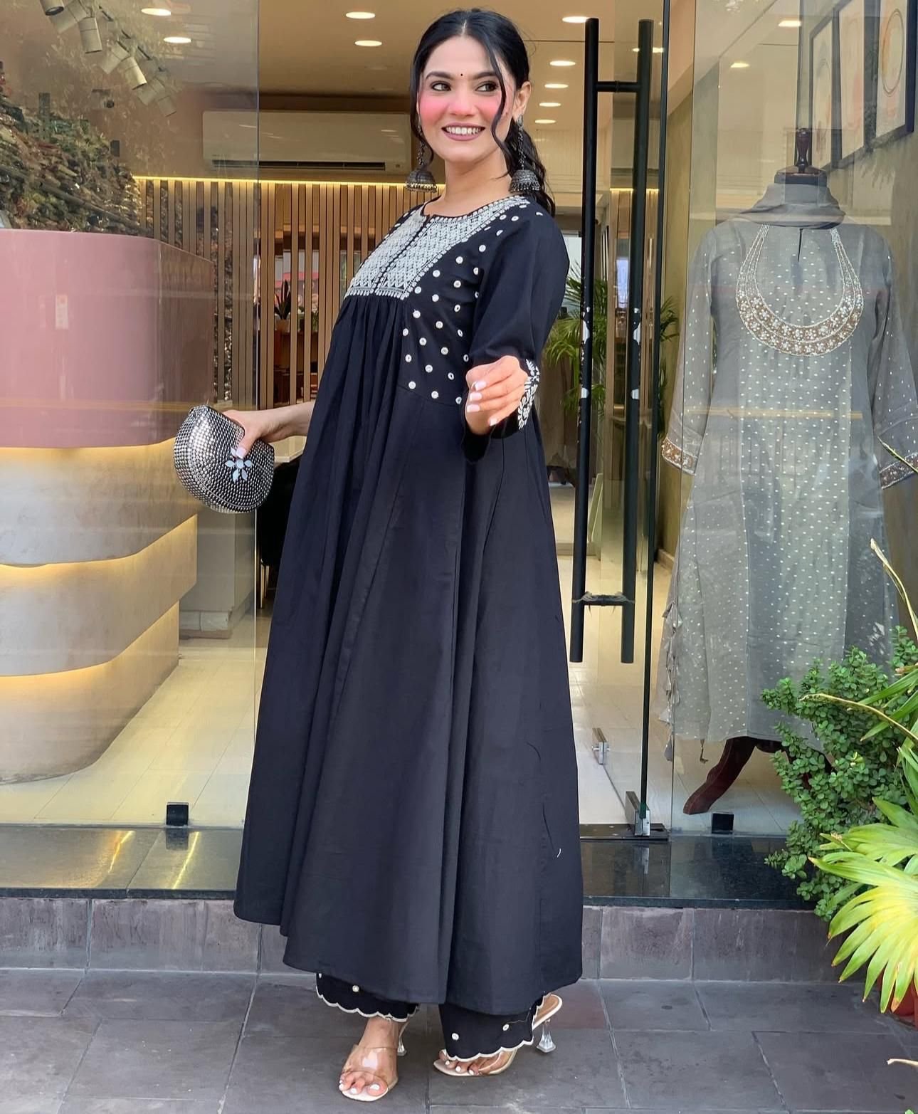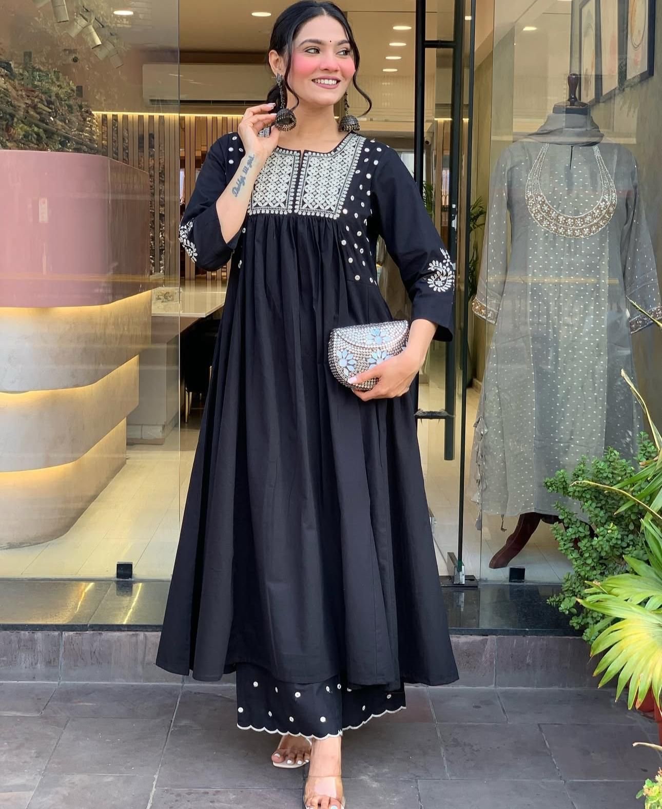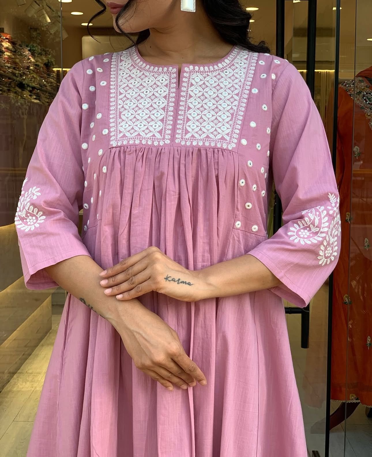 👗 Kurti Style – Flaired kurti with fine thread embroidery