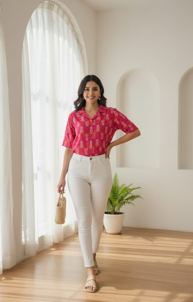 Fresh, playful, and effortlessly chic — the Trisha Cotton Charm Crop Shirt is your go-to style essential for the season. Tailored from premium cotton fabric, this half-sleeve crop shirt perfectly balances comfort and trend. Its breezy fit and crisp finish make it ideal for pairing with high-waist jeans, skirts, or trousers — giving you that effortlessly confident, cool-girl vibe for any casual outing.